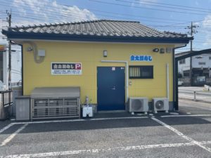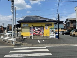 本店はメインカラー紺色×アクセントカラー黄色で施工させて頂きましたが松山店は逆のメインカラー黄色×アクセントカラー紺色で付帯部の塗装をさせて頂きました(^^)v