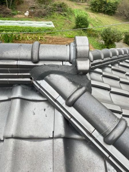以前から漆喰が落ちてくるのが気になるとのお話だったので屋根に上り調査した所、やはり漆喰の劣化が見られました。